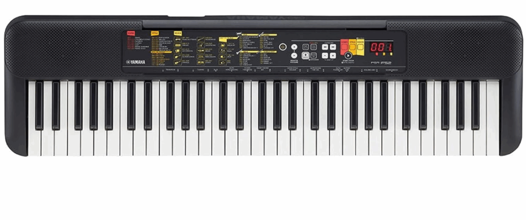 - Das PSR-F52 bietet die Auswahl zwischen Songs, Styles sowie Sound-Kategorien und ist mit einem Bedienfeld mit illustrierten Symbolen für eine einfache Bedienung ausgestattet – ideal für Einsteiger